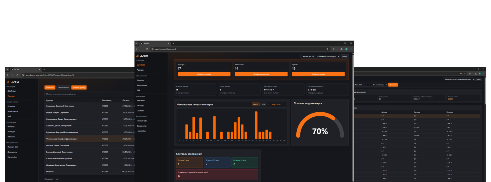 Я прошел через все сложности проката — от ручного учёта в табличках до потерь в платежах. Я создавал rbCRM как внутренний инструмент для своего парка, но теперь доступен всем нашим коллегам, кто хочет управлять прокатом электровелосипедов профессионально и не терять деньги.